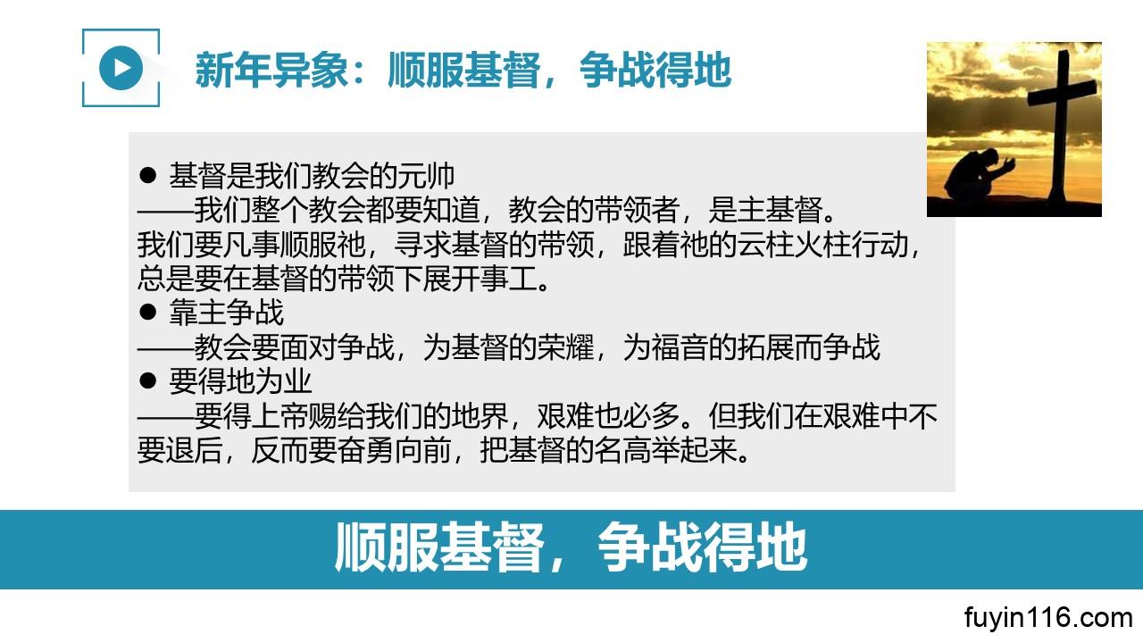 求主让每一个听众,从“新年的异象”中得重要的提醒,不向我们的仇敌投降,而是靠着基督,与魔鬼、世界和肉体努力争战,经历你的得胜。
