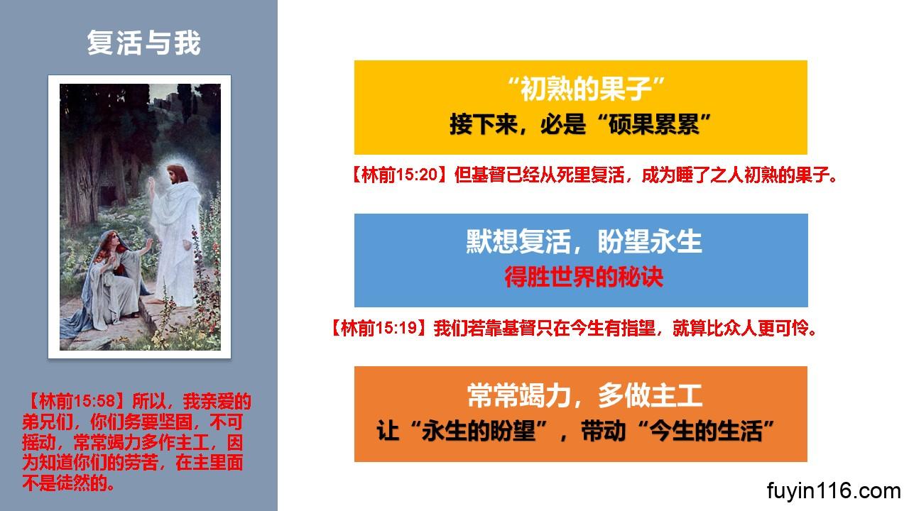让我们更明白“复活”的真意,过一个发挥“基督的复活生命”能力的得胜生活。