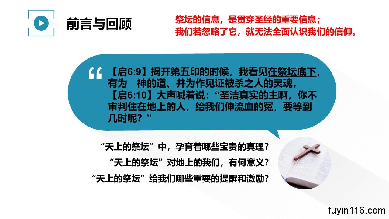 在圣经的最后一卷书《启示录》,我们会惊奇地发现,有关“祭坛”的信息依然是十分丰富的,有5处经文直接讲到祭坛。
