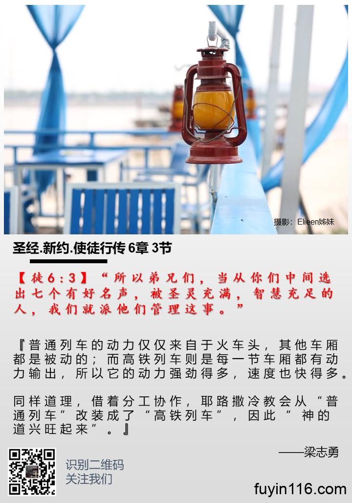 因为,一个分工协作的教会,和一个仅仅靠牧师长老或几个同工带动一切事工的教会,两者的区别,就好像高铁列车和普通列车的区别一样——所有的普通列车,机车动力都是从车头发出来的,其他车厢都是被动的;而高铁列车每一节车厢都有动力输出,所以它的动力要比普通列车强大得多,速度也快得多。