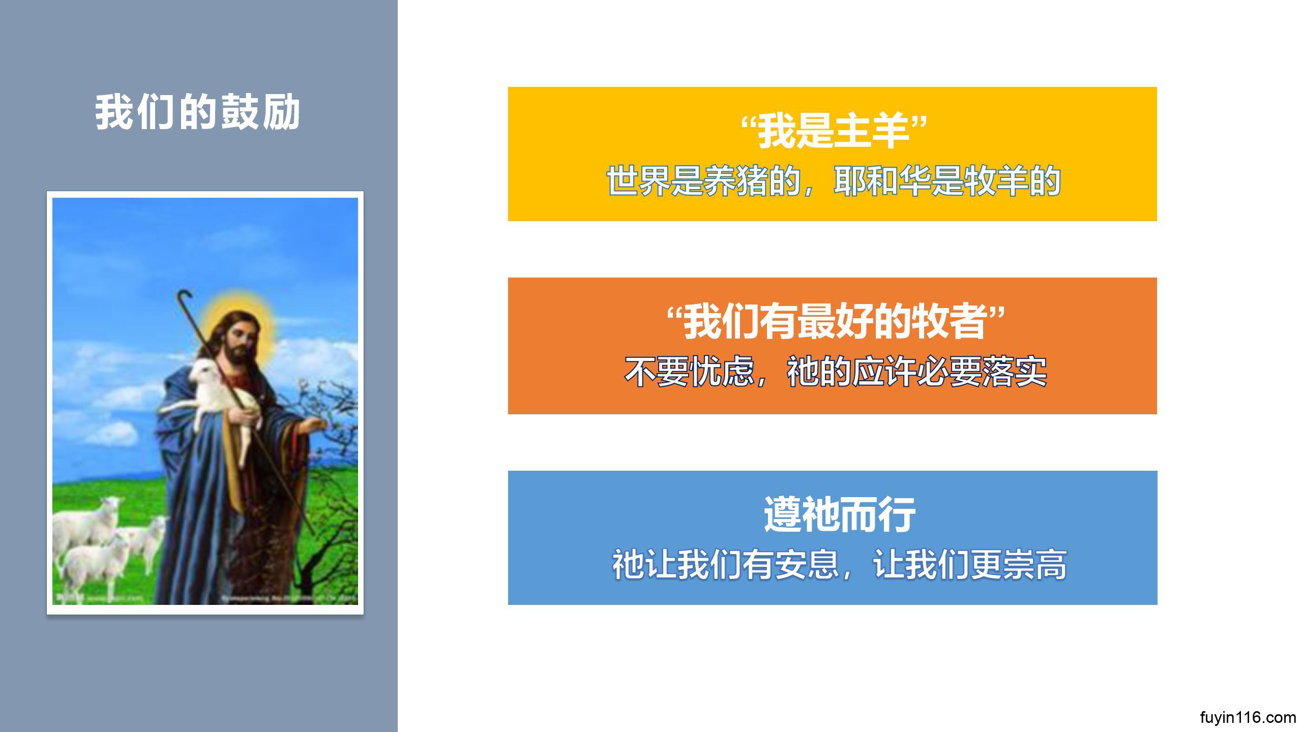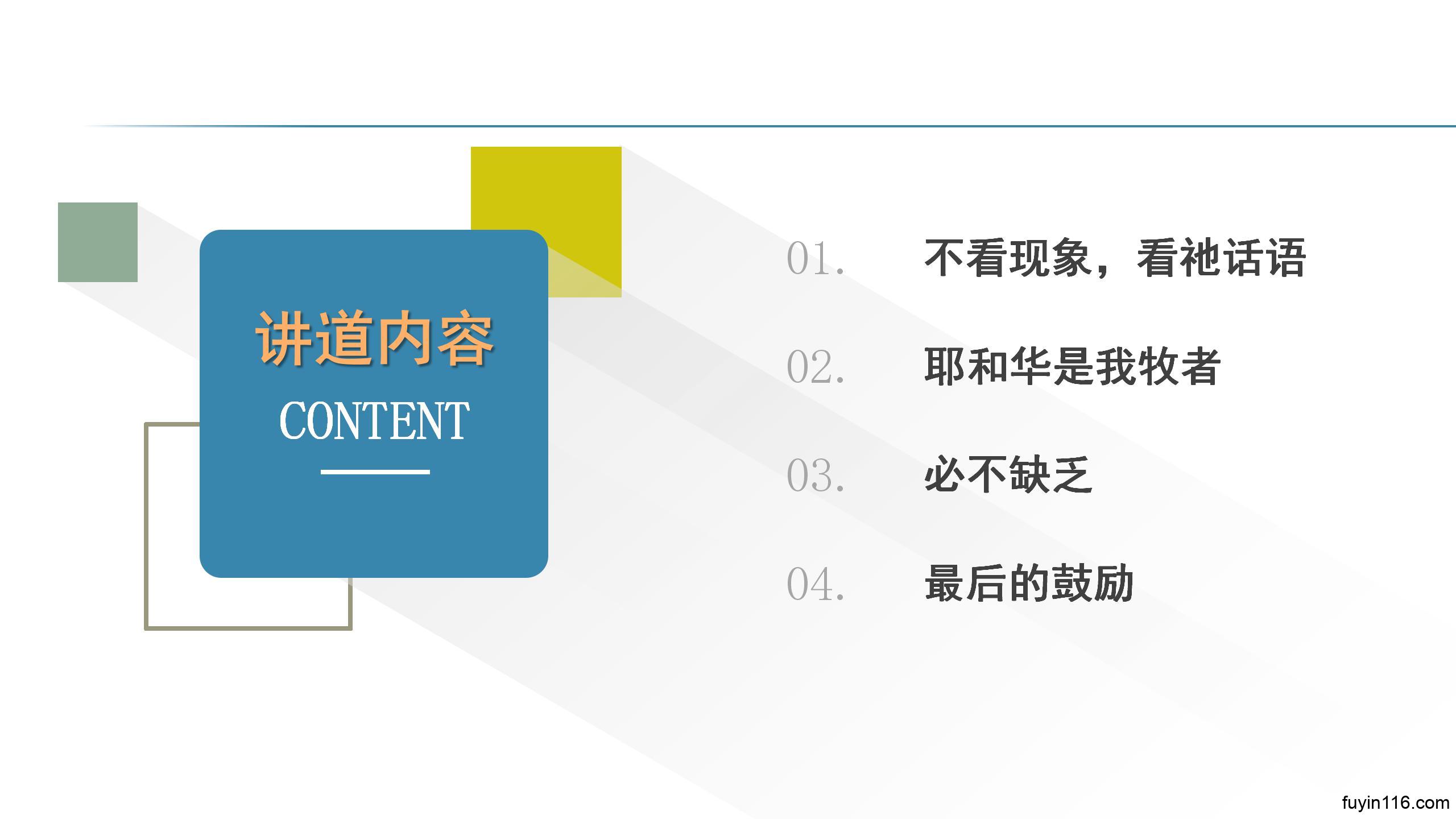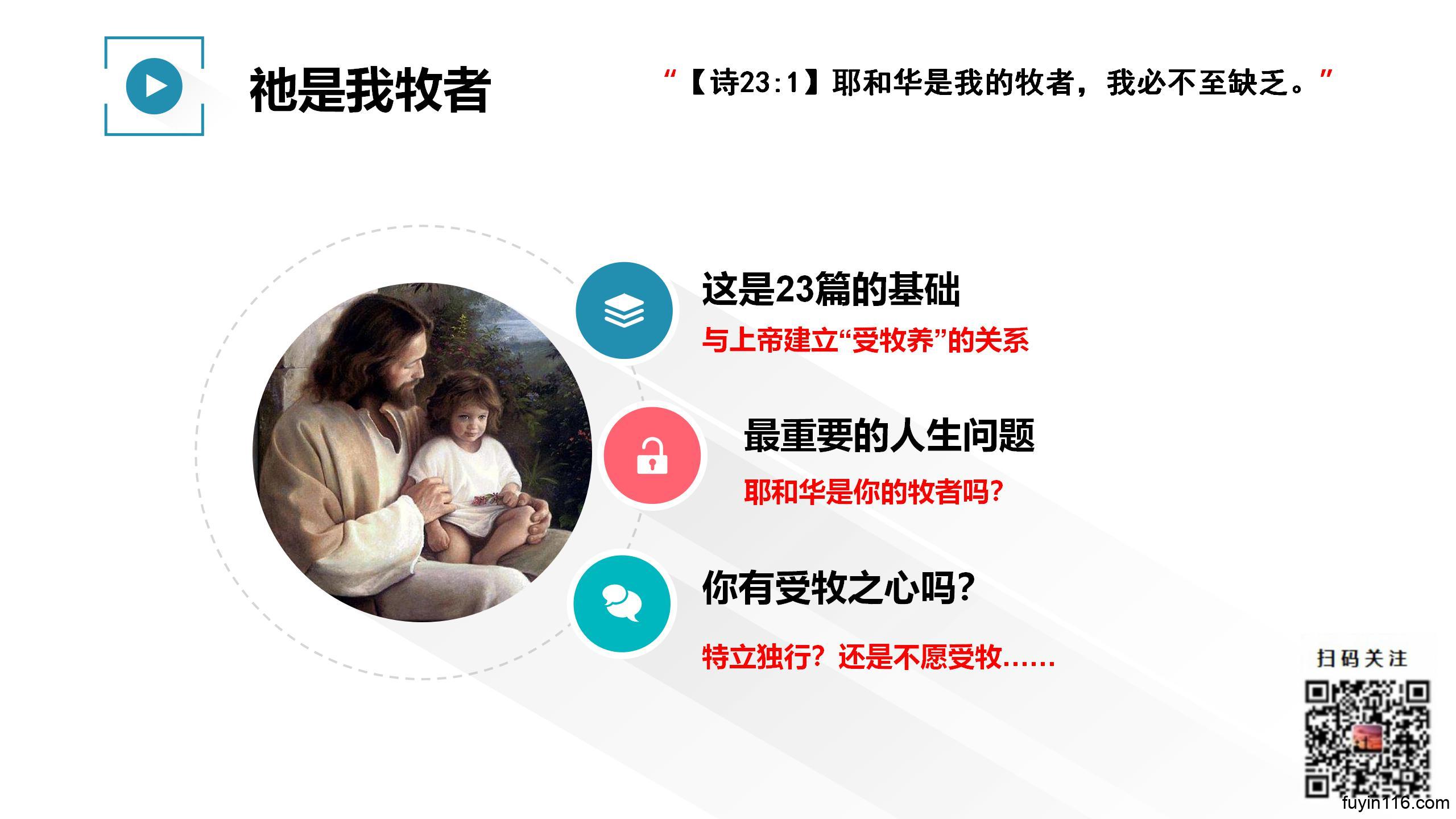 求主祝福我们的《诗篇23篇》系列讲道录音,让我们所讲的,能帮助弟兄姊妹看见基督,能让更多的心灵得到安慰和激励。