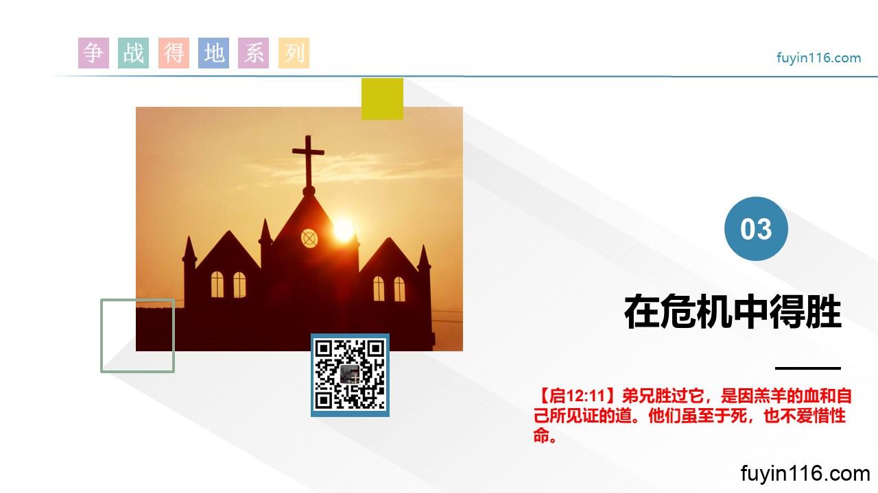 在10月02日,我们将进入《顺 服 基 督,争 战 得 地》系列的第07讲分享。