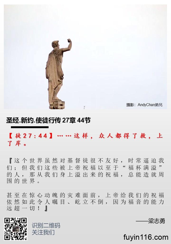 【徒27:44】其余的人可以用板子或船上的零碎东西上岸。这样,众人都得了救,上了岸。
