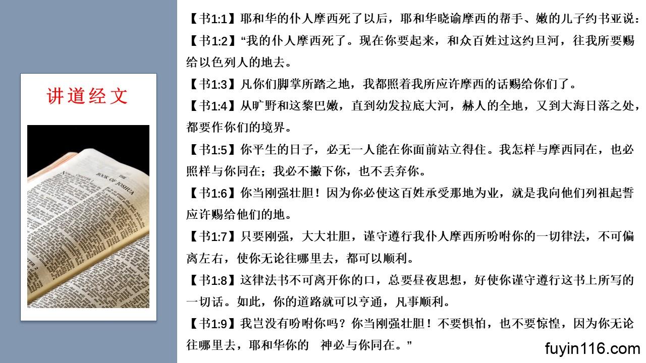 标签: 刚强壮胆 律法与福音 得胜的确据 约书亚记
