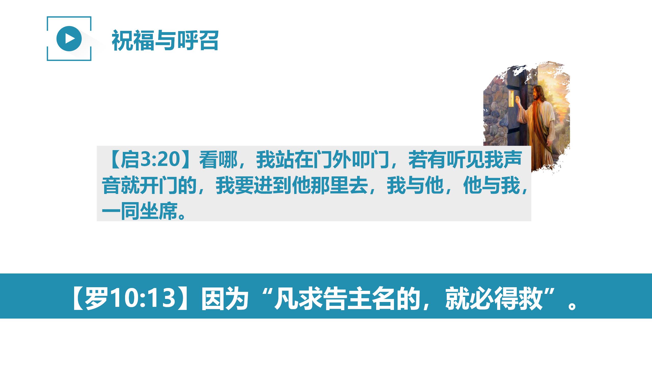 因为你今天看到这篇文章,听到这篇讲道,绝不是偶然碰巧的,而是救主基督,特意要借着这篇文章叩响你的心门,向你发出蒙福的呼召,为要拯救你的灵魂。
