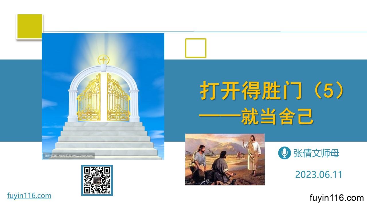 在6月11日的主日,由倩文师母继续《打开得胜门》系列的分享,第05讲: