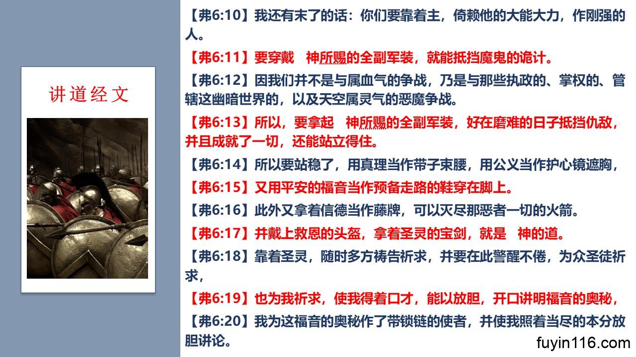 标签: 信德的藤牌 信心 全副军装 全力以赴 圣灵的宝剑 属灵争战 救恩的头盔