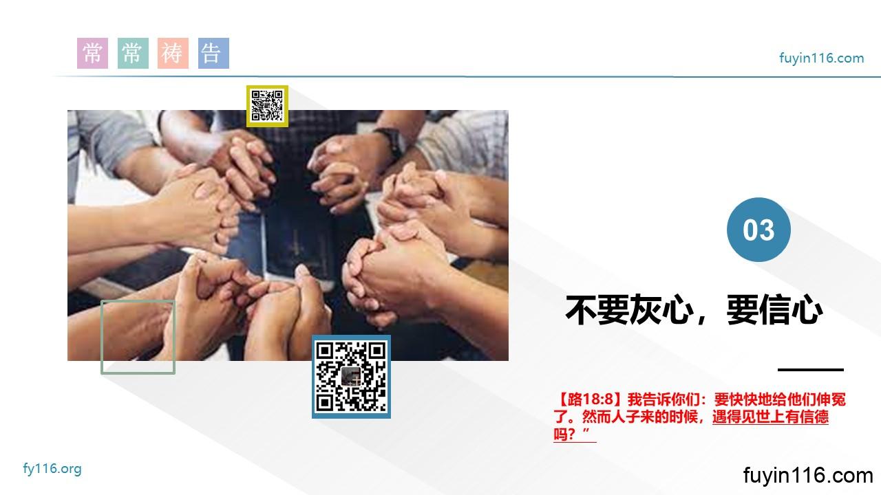 关于祷告,主耶稣讲了一个“穷寡妇和不义的官”的比喻。