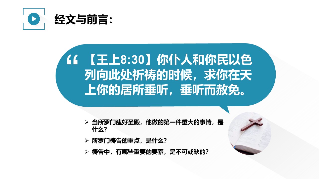 所罗门的祷告,其中一个重点是什么,给我们哪些重要的启迪?