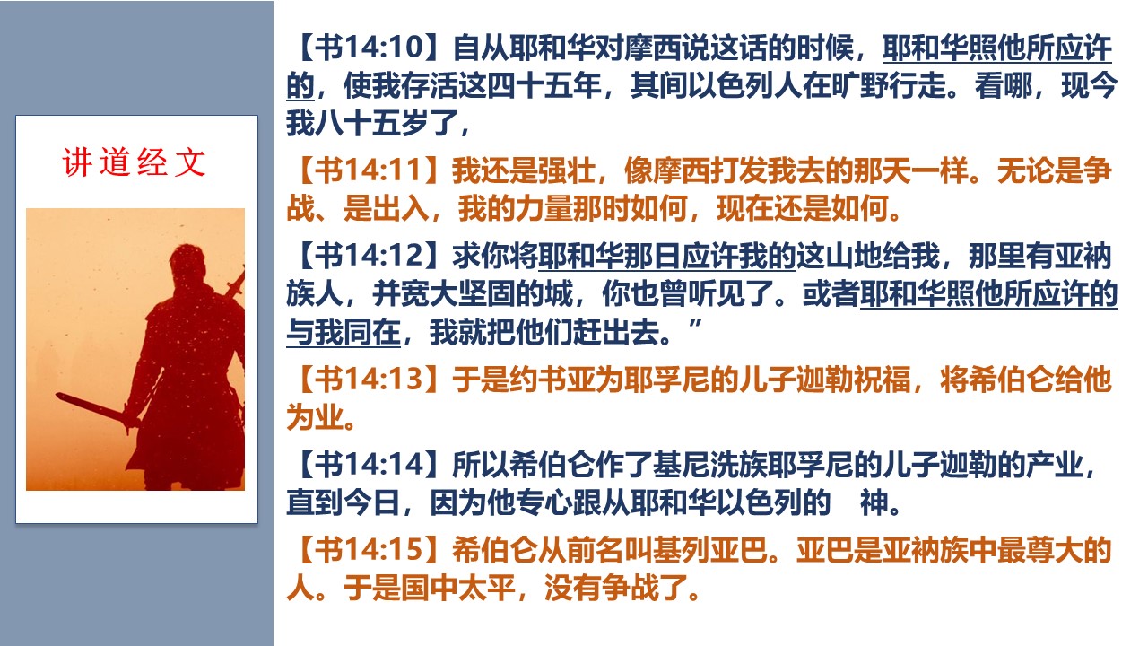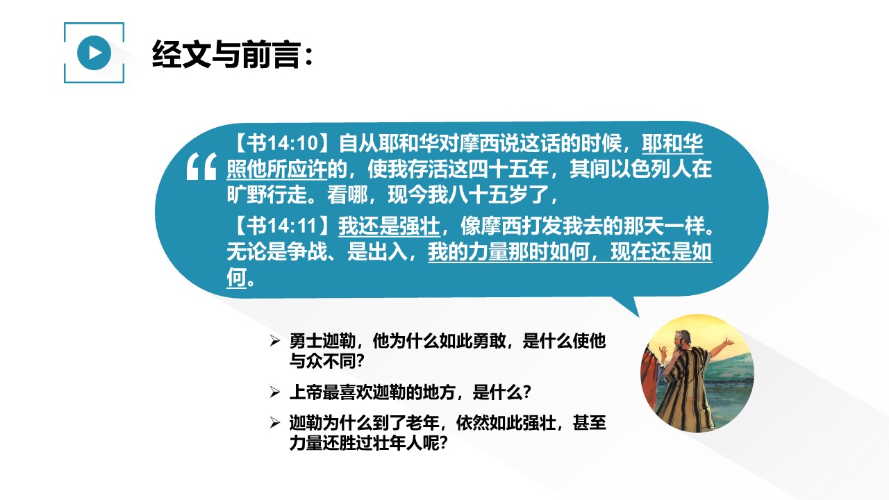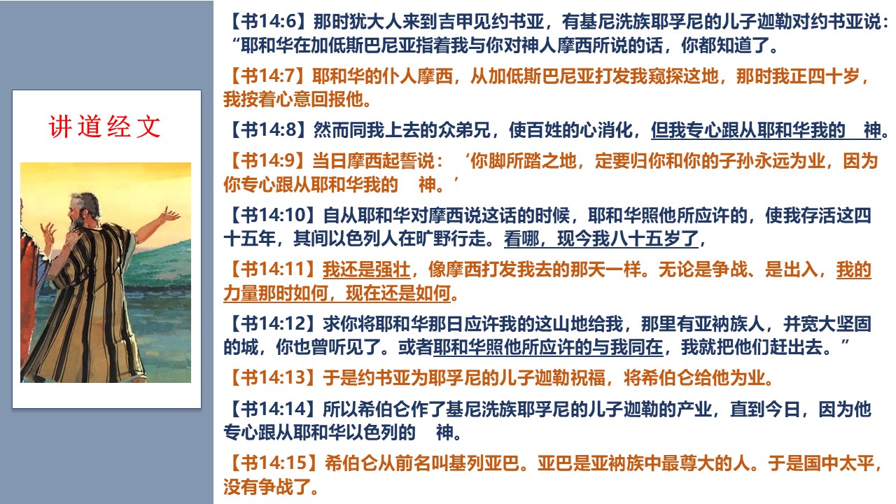 勇士迦勒,在85岁的时候,还能打败强大的亚衲族最强大的王,攻下最坚固的城。