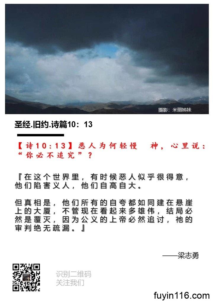 【诗10:13】恶人为何轻慢 神,心里说:“你必不追究”?