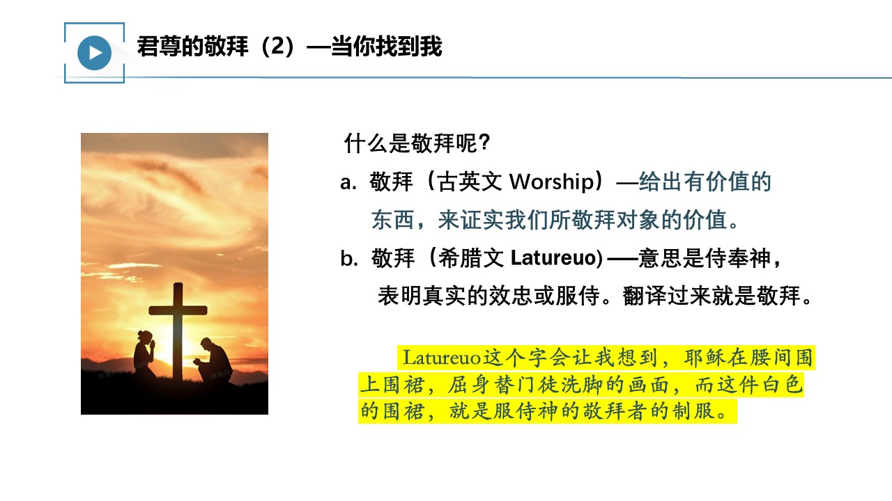 当上帝在基督里找到了我们,我们就成了敬拜上帝的人。