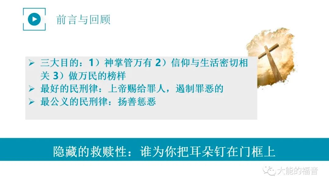 今天我们将《出埃及记》民刑律最后的信息分享完了。