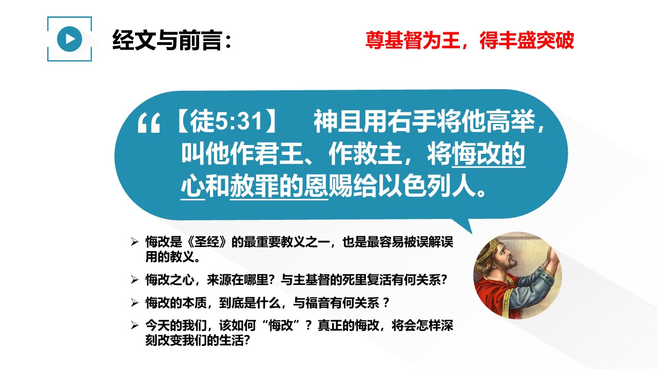 在使徒行传5章,使徒彼得的一次勇敢布道中,他把主耶稣基督的复活,与我们的悔改之心,紧密联系在一起。