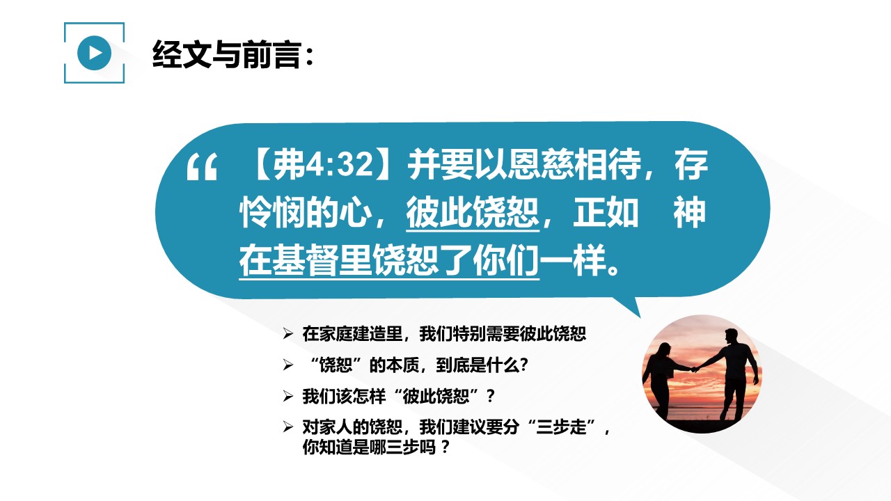 我们要“彼此饶恕”的时候,应该分哪三步走,才能真正得胜?