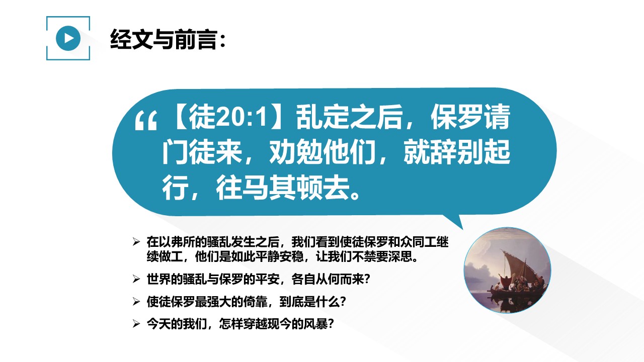 在以弗所的骚乱发生之后,我们看到使徒保罗和众同工继续做工,他们是如此平静安稳,让我们不禁要深思。