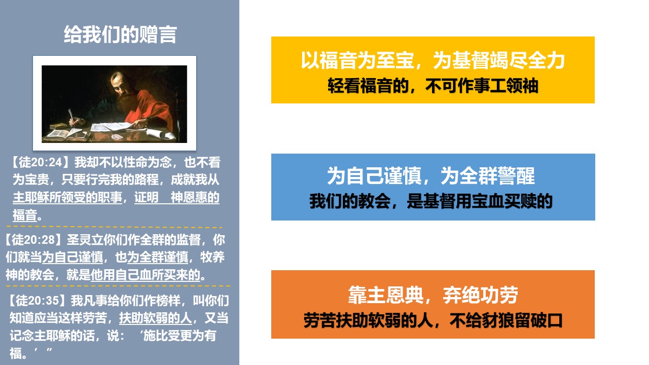保罗向以弗所长老们的临别赠言,真是感人至深。