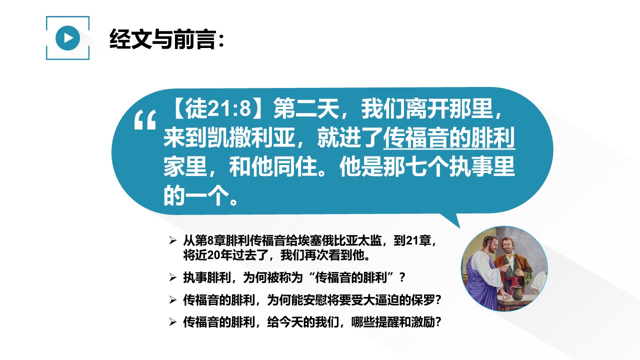 传福音的腓利,为何能安慰将要受大逼迫的保罗?