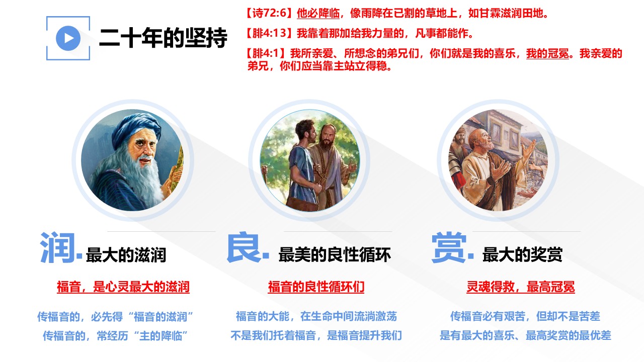 让我们更认识福音的大能,更注重与主同行、与神相交的生命建造,更勇敢为主作见证。