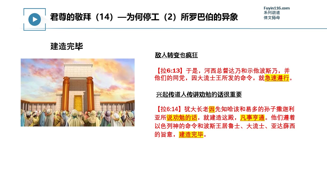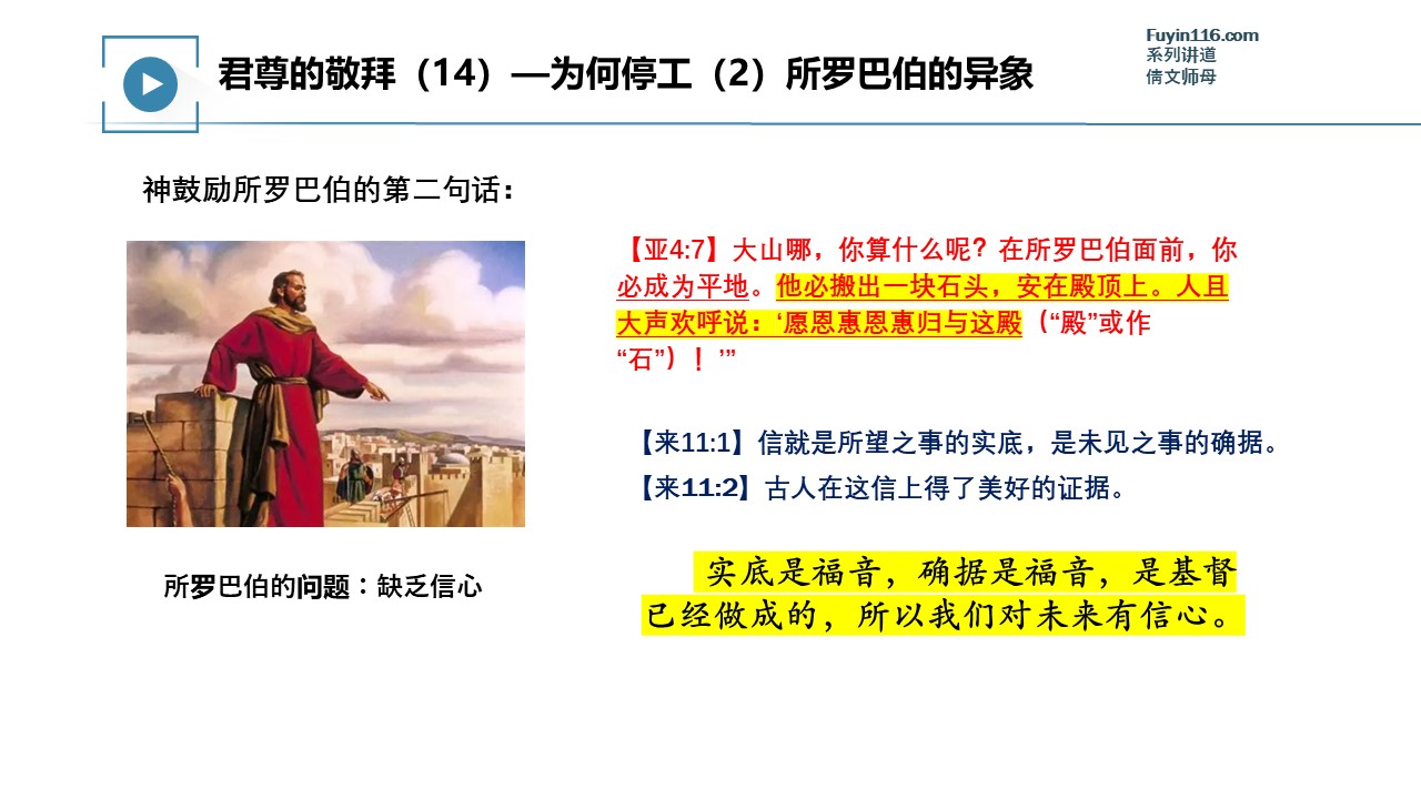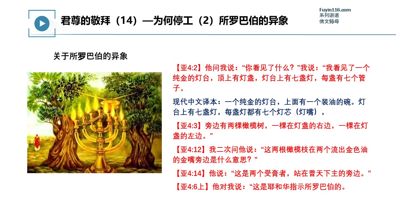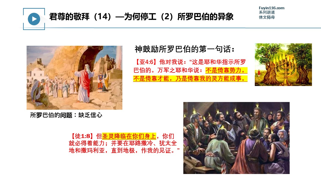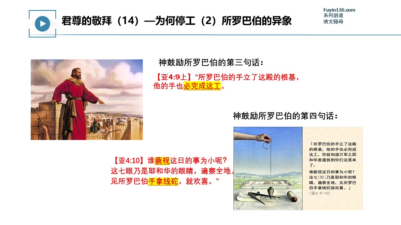 上帝为了激励祂的百姓重新建造,特别赐下了“所罗巴伯的异象”