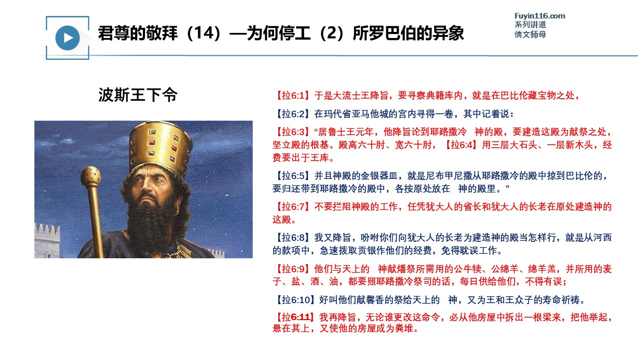 以色列人在建造第二圣殿(所罗巴伯圣殿)期间,有一段时间被迫停工了。