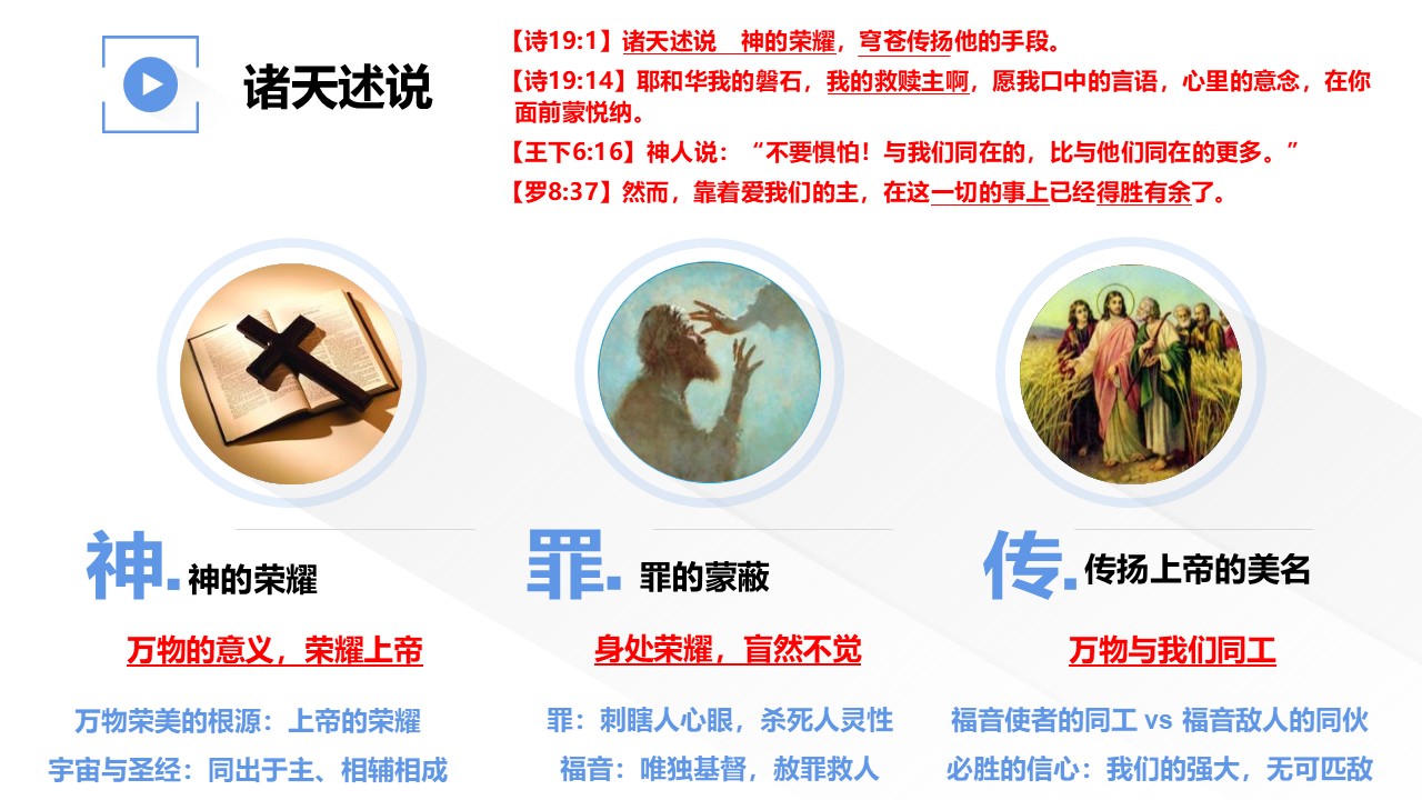 第一节经文宣告“诸天述说 神的荣耀”,告诉我们哪些荣耀的真理?