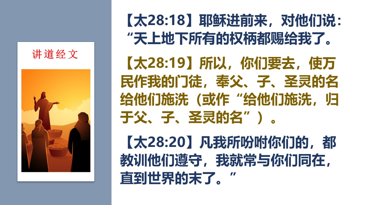 主耶稣赐给我们的福音大使命,强调祂拥有天上地下所有的权柄。