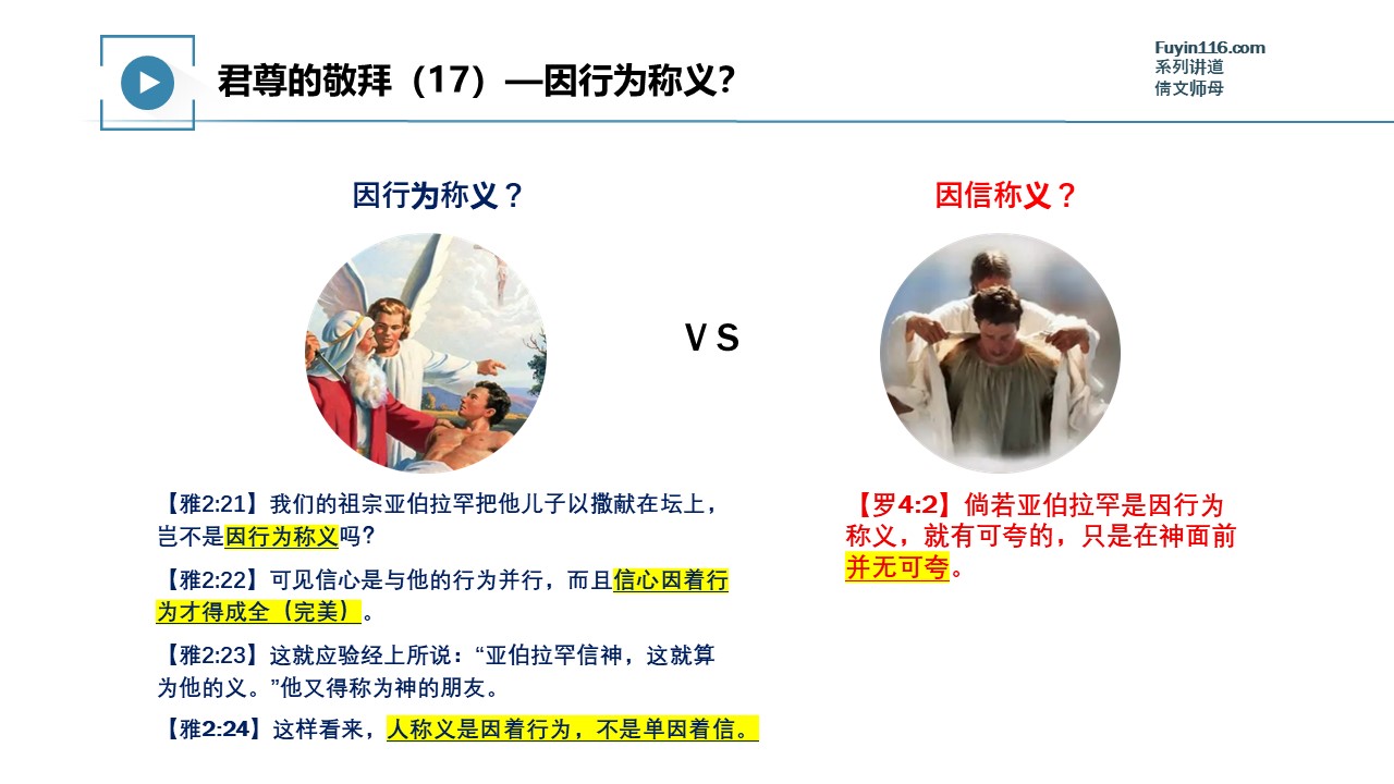 《雅各书》里面讲到的“因行为称义”到底是什么意思?