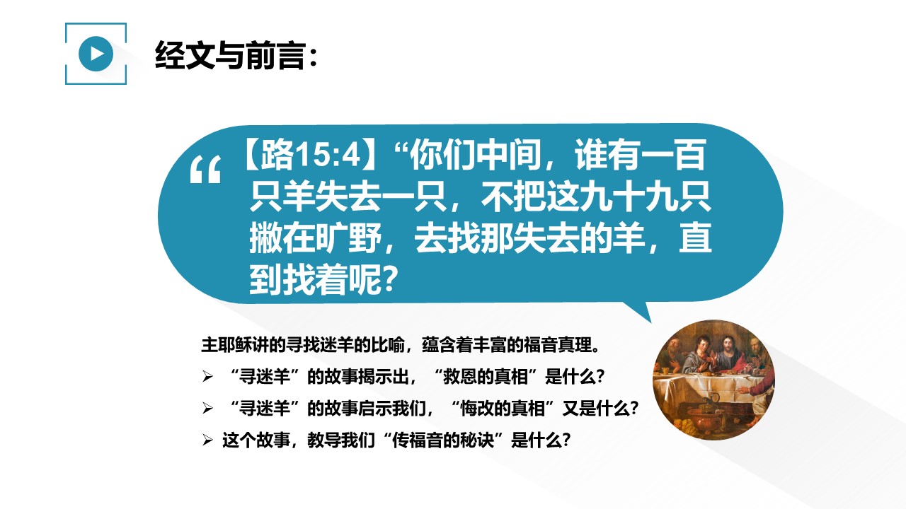 主耶稣讲的寻找迷羊的比喻,蕴含着丰富的福音真理。