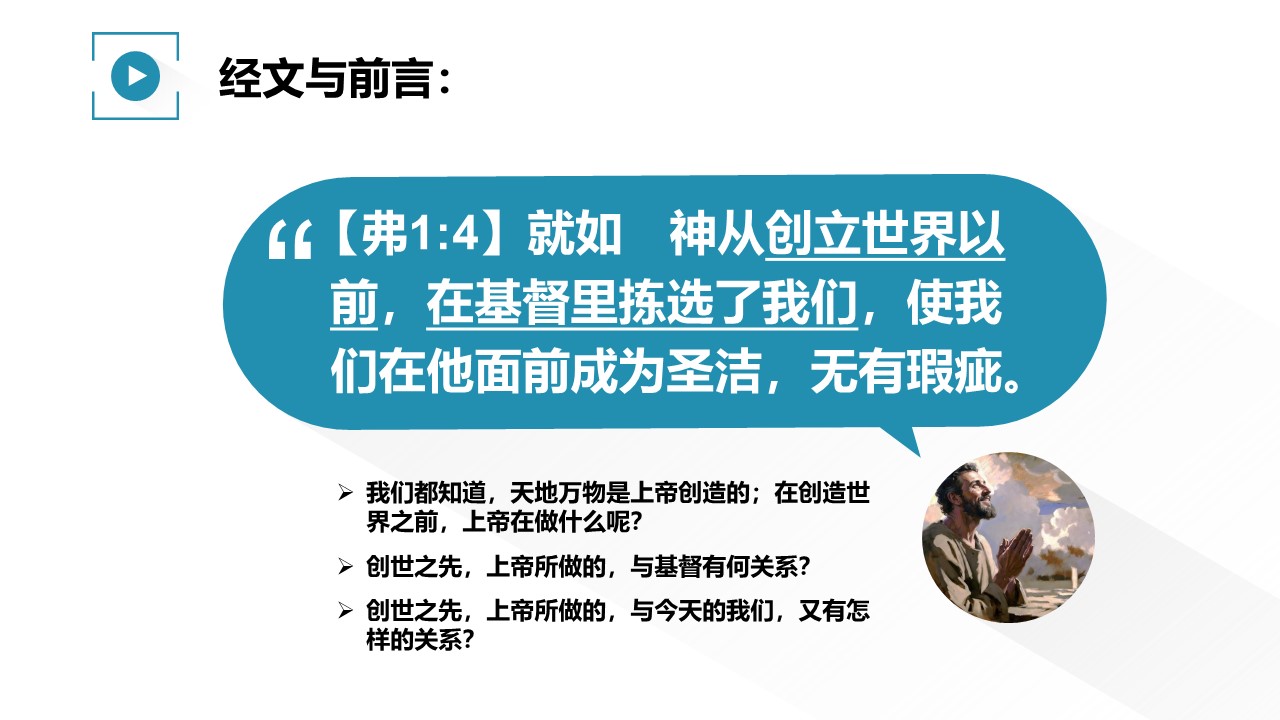 创世之先,上帝所做的,让我们对福音有了哪些更新的认识?