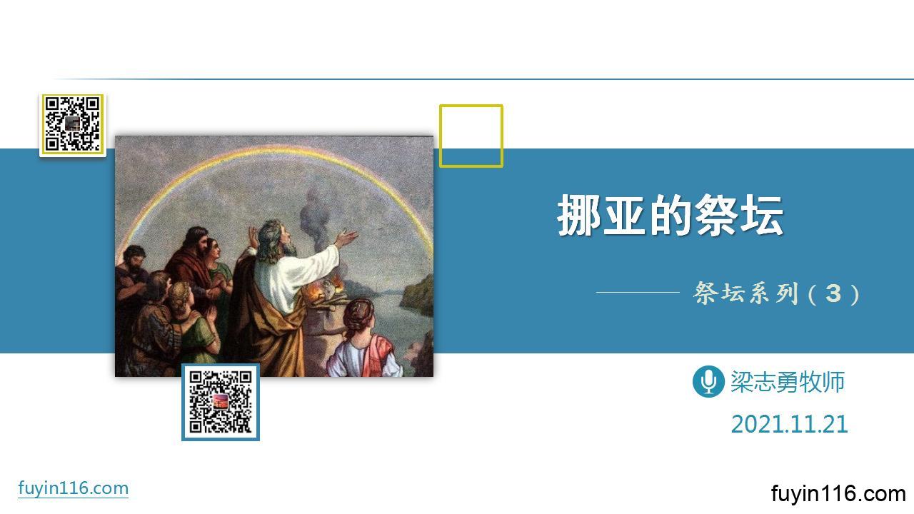 求主让我们认识“挪亚的祭坛”的奇妙真理,更倚靠基督,生命更新,不断得胜。