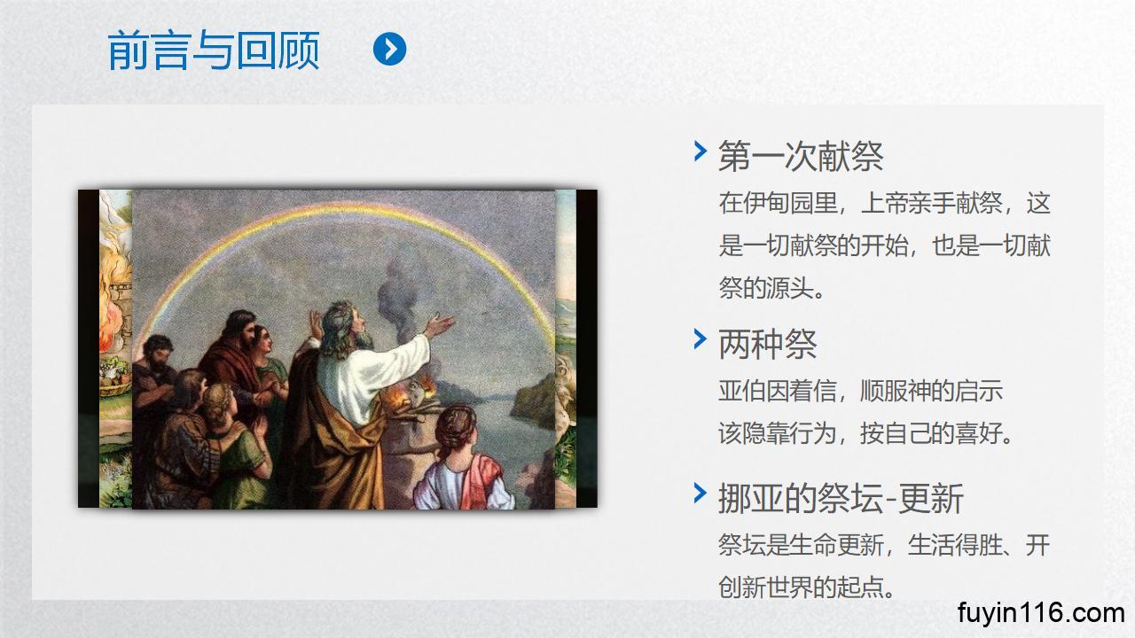 “祭坛”这个主题,是贯穿整本圣经,从《创世记》,直到《启示录》。