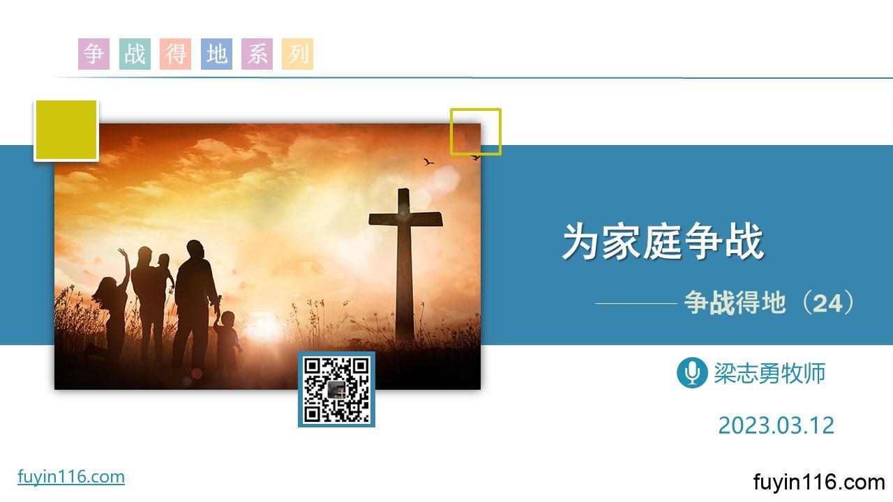在3月12日,我们继续《争战得地》系列的分享,第24讲: 《为家庭争战》 为什么我们要为家庭争战? 我们该怎样为家庭争战? 努力为家庭争战,会带来哪些惊人的美好果效? 愿上帝的祝福借着祂的真道,更多地临到每一个认真聆听的灵魂。 欢迎您跟着我们的文章的提示,收听我们的录音: 《为家庭争战》 您也可以点击下面的链接,重温之前的信息: 《争战得地》系列 《正月初一日》 《新天新地、新圣城》 点击音频媒体前面的小三角“►”就可以播放: 墙外观看: 我们的阿爸天父,感谢赞美你 感谢你赐给我们《圣经》真理,让我们…