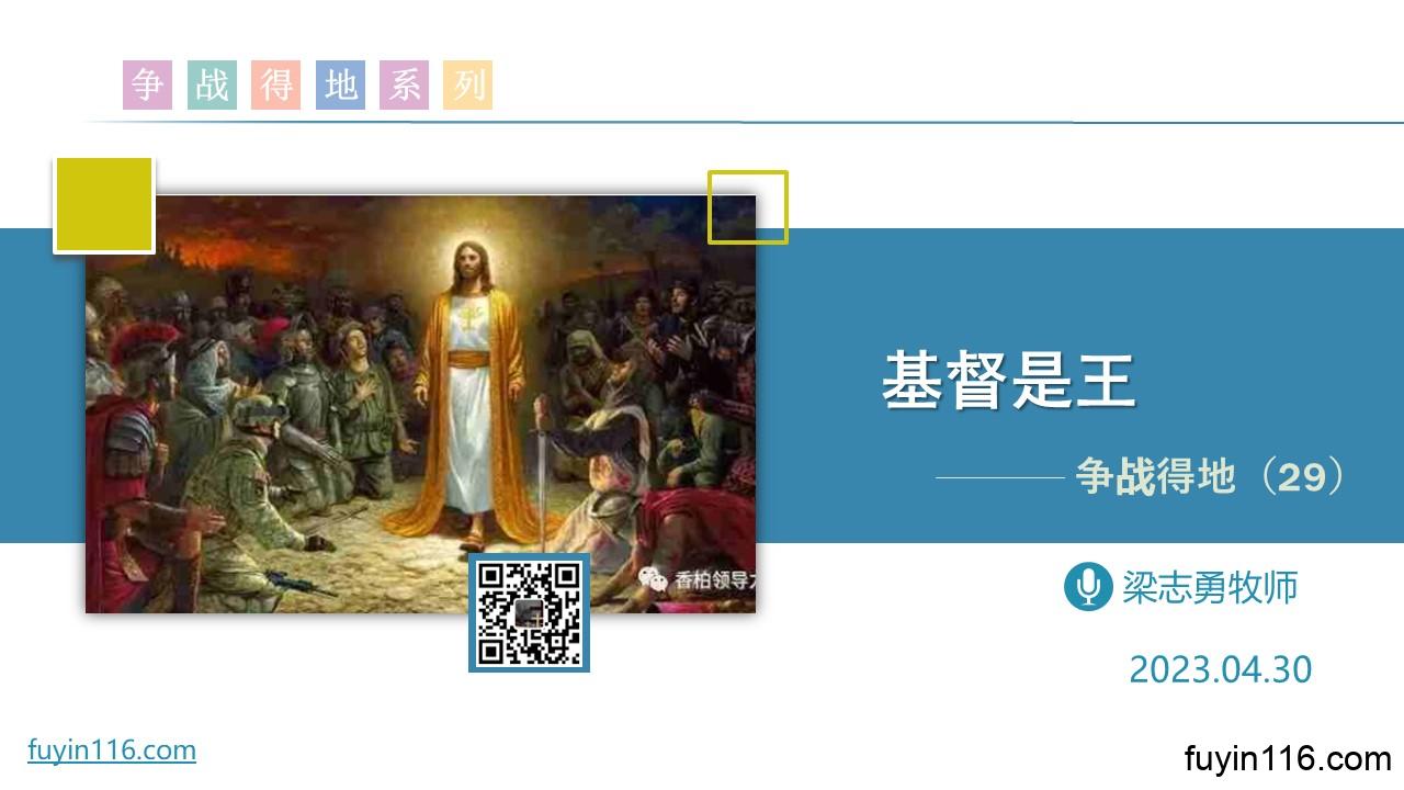 在4月30日,我们继续分享《争战得地》系列的第29讲: 《基督是王》 在彼拉多面前,主基督为何要承认和宣告,祂就是王呢? 这个世界的真相,到底是什么? “基督是王”,其中的深刻内涵到底是什么呢? “基督是王”这个真理,与今天的我们,有何重大的关系? 愿上帝的祝福借着祂的真道,更多地临到每一个认真聆听的灵魂。 欢迎您跟着我们的文章的提示,收听我们的录音: 《基督是王》 您也可以点击下面的链接,重温之前的信息: 《争战得地》系列 点击音频媒体前面的小三角“►”就可以播放 请点击…