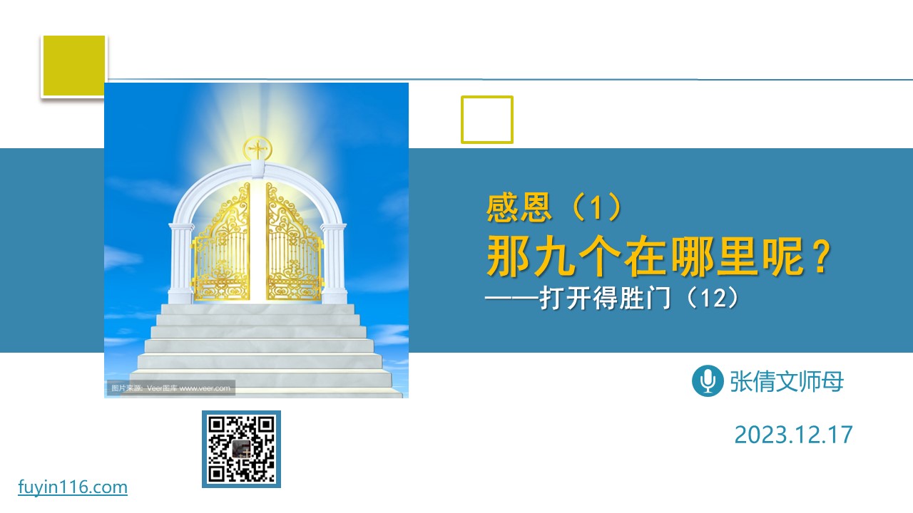 主耶稣曾经医好了十个大麻风病人,其中只有一人回来感恩。 这个故事,告诉我们“恩典的真理”是什么? 上帝赐给我们有哪两种恩典,两者的关系如何? 感恩的真义,到底是什么? 愿上帝的祝福借着祂的真道,更多地临到每一个认真聆听的灵魂。 欢迎您收听: 《那九个在哪里》 https://luomashu.top/ztxf 您也可以点击下面的链接,重温之前的信息: 《打开得胜门系列》 点击音频媒体前面的小三角“►”就可以播放 我们的阿爸天父,感谢…