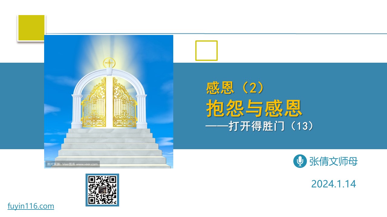 我们为何会感恩? 我们抱怨的根本原因,又是什么? 感恩和抱怨,对我们的生命分别有怎样重大的影响? 愿上帝的祝福借着祂的真道,更多地临到每一个认真聆听的灵魂。 欢迎您跟着我们的文章的提示,参加视频直播或收听录音: 《抱怨与感恩》 https://luomashu.top/81tn 您也可以点击下面的链接,重温之前的信息: 《打开得胜门系列》 点击音频媒体前面的小三角“►”就可以播放 我们的阿爸天父,感谢赞美你 感谢你赐给…