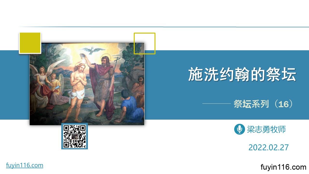 施洗约翰被称为新约的以利亚,主耶稣对他的评价也非常高 他的人生,有什么特点? 他的人生,与祭坛有什么关系? 在施洗约翰身上,我们可以学到哪些重要的信仰功课? 点击音频媒体前面的小三角“►”就可以播放: 主耶稣基督,感谢赞美你 感谢你赐给我们《圣经》真理,让我们认识“祭坛”与我们信仰的关系。 求主祝福我们这篇讲道,因为若没有你的祝福,我们所作的一切都毫无意义。 求你赐福我们所讲的,借着《施洗约翰的祭坛》的信息分享,让你的百姓得大造就。 求主让每一个听众,从“施洗…