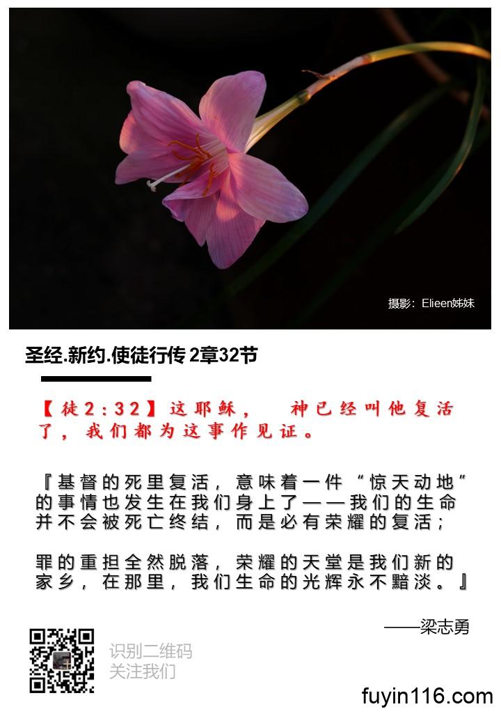 【徒2:32】这耶稣, 神已经叫他复活了,我们都为这事作见证。 《独一无二的人生观》 作者:梁志勇牧师 朗诵:倩文师母 独一无二的人生观 (梁志勇) 【徒2:32】这耶稣, 神已经叫他复活了,我们都为这事作见证。 在五旬节圣灵降临之后,彼得他们用各国语言传讲福音,预示着基督的福音,真的要如主耶稣所吩咐和应许的那样,“福音要传到万邦万国”,“使万民做我的门徒”。 在五旬节,使徒彼得的讲道重点,是基督的“死里复活”。 为什么彼得的讲道重点是“基督的死里复活”呢? 因为基督的复活,给了我们一个全新的、“独一…