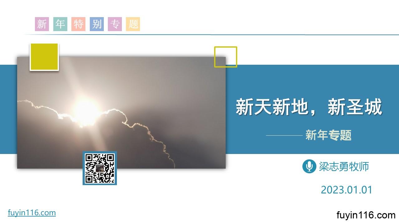 2023年1月1日,新年的第一天,正好就是主日,是我们敬拜至高上帝的日子。我们要有一次新年专题分享: 《新天新地,新圣城》 我们的新年,如何做到“更新”,而不是“重复”? “新天新地”的真理,对我们到底意味着什么? 圣城新耶路撒冷,又意味着什么? “新天新地、新圣城”对今天的我们,有什么提醒和激励? 欢迎您跟着我们的文章的提示,收听我们的录音,愿上帝的祝福借着祂的真道,更多地临到每一个认真聆听的灵魂。 您也可以点击下面的链接,重温之前的信息: 《争战得地》系列…